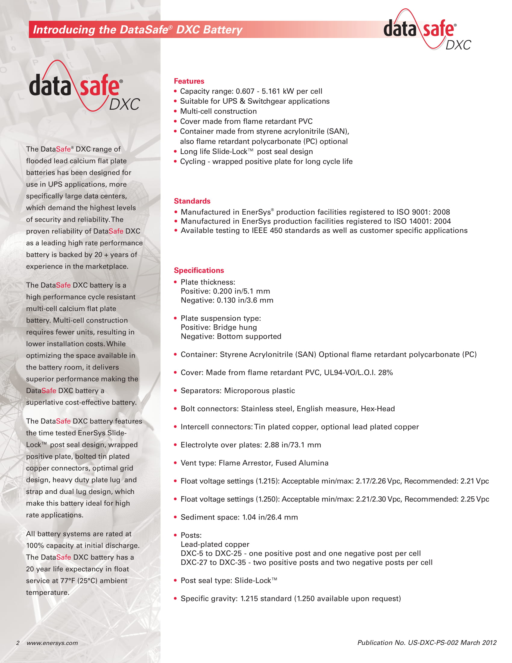 • Manufactured in EnerSys® production facilities registered to ISO 9001: 2008