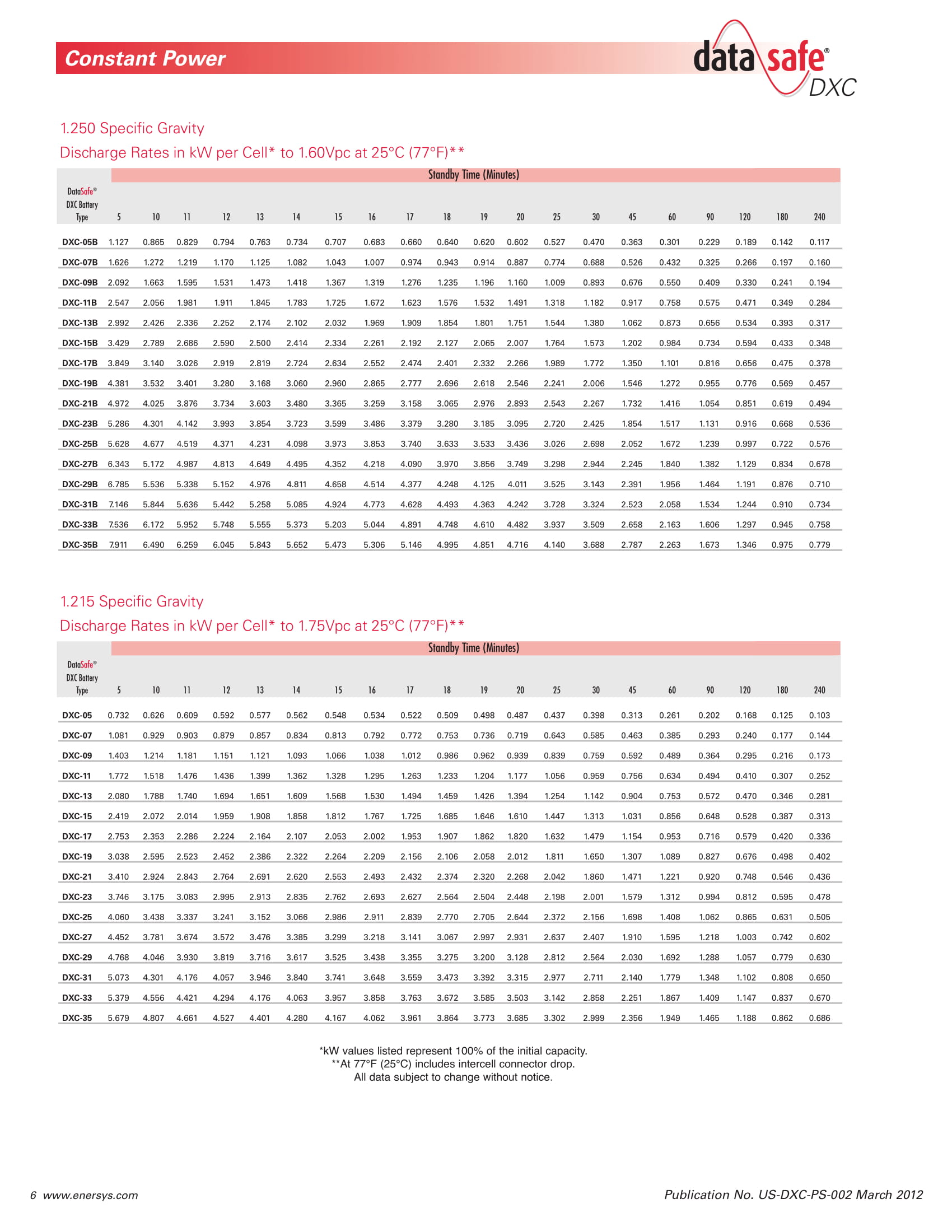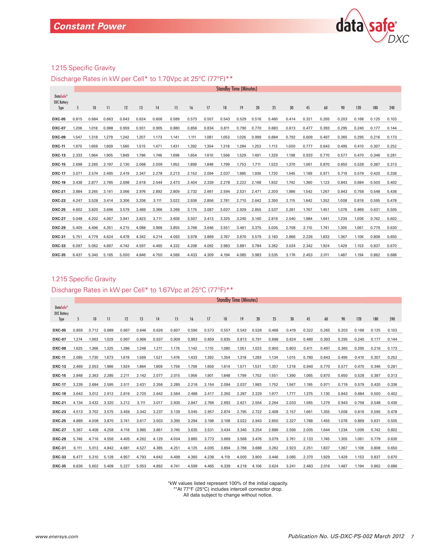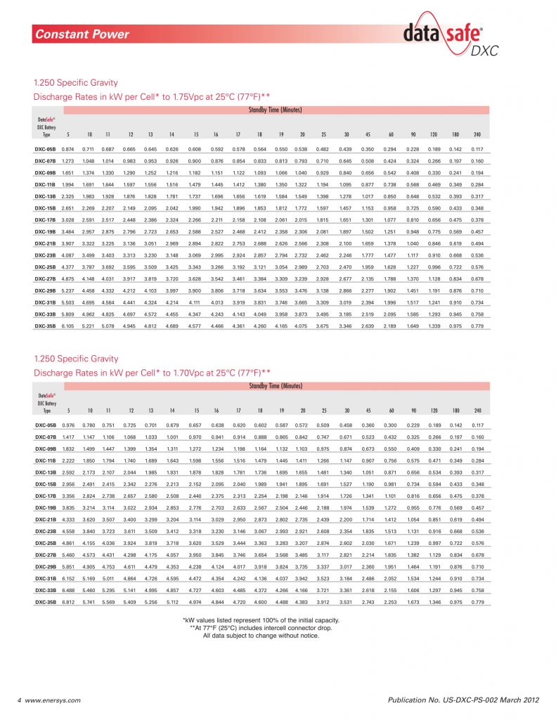 • Available testing to IEEE 450 standards as well as customer specific applications